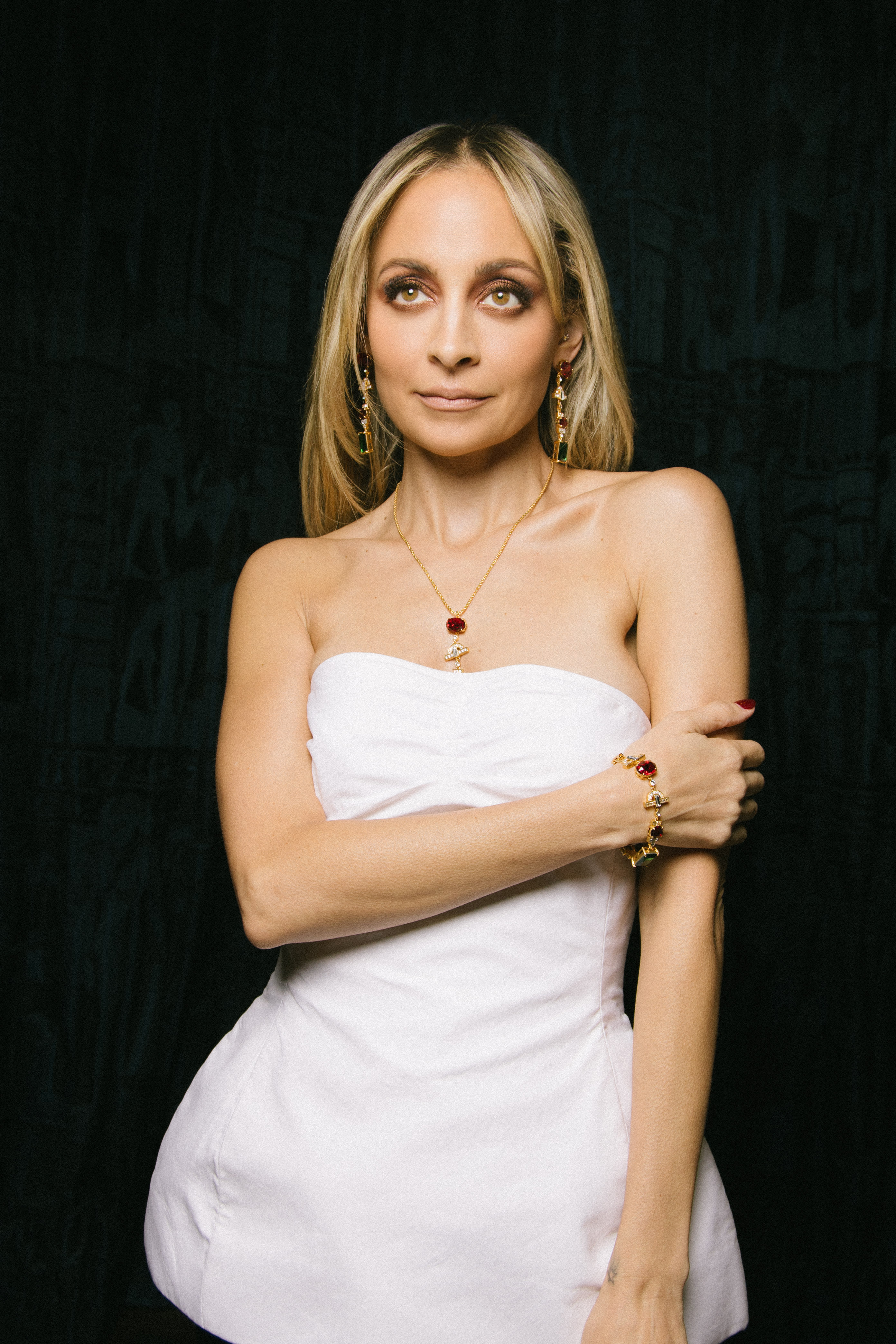 The Parker Bracelet a regal art-deco inspired tennis bracelet with Ruby, Clear and Emerald Crystals with an adjustable fold-over clasp.