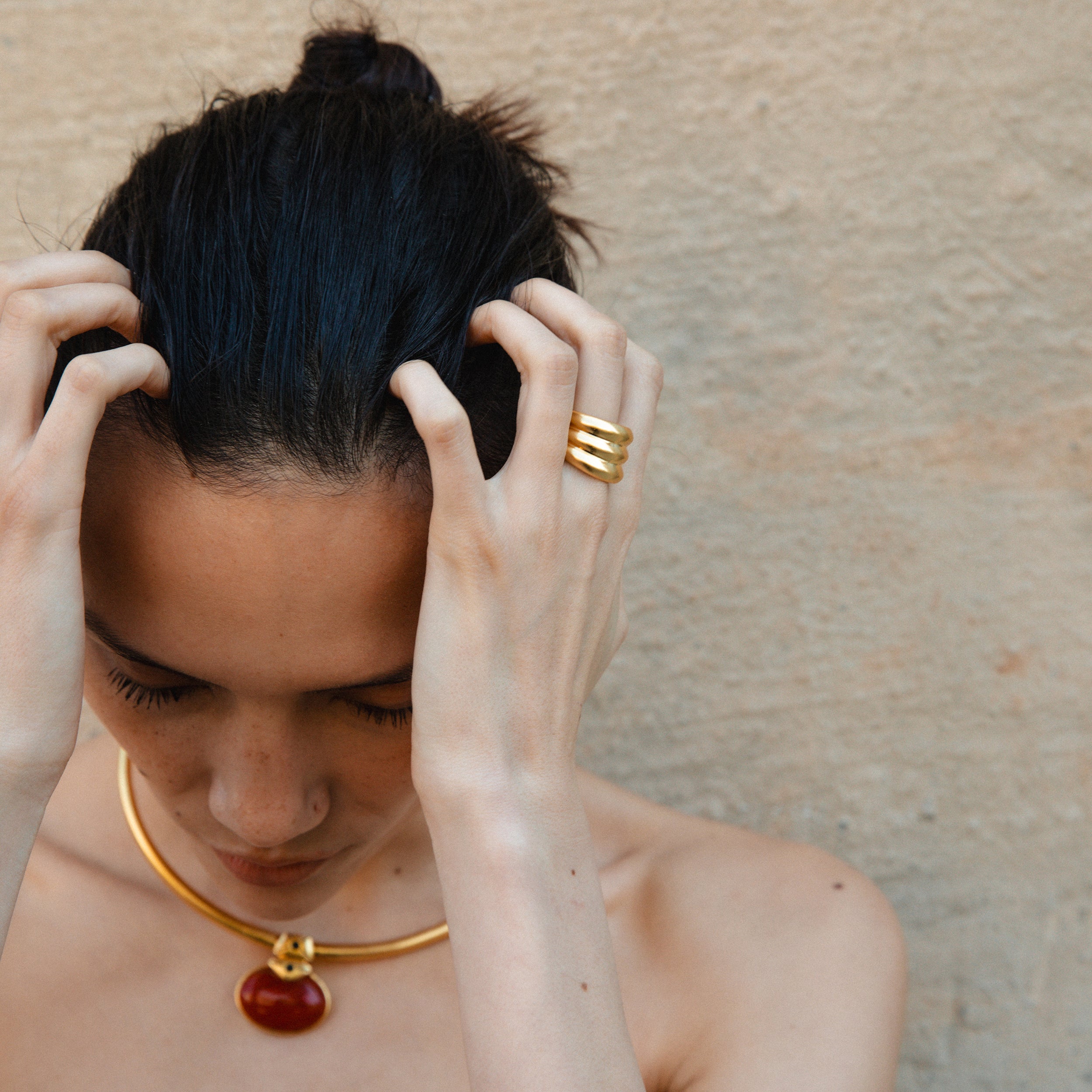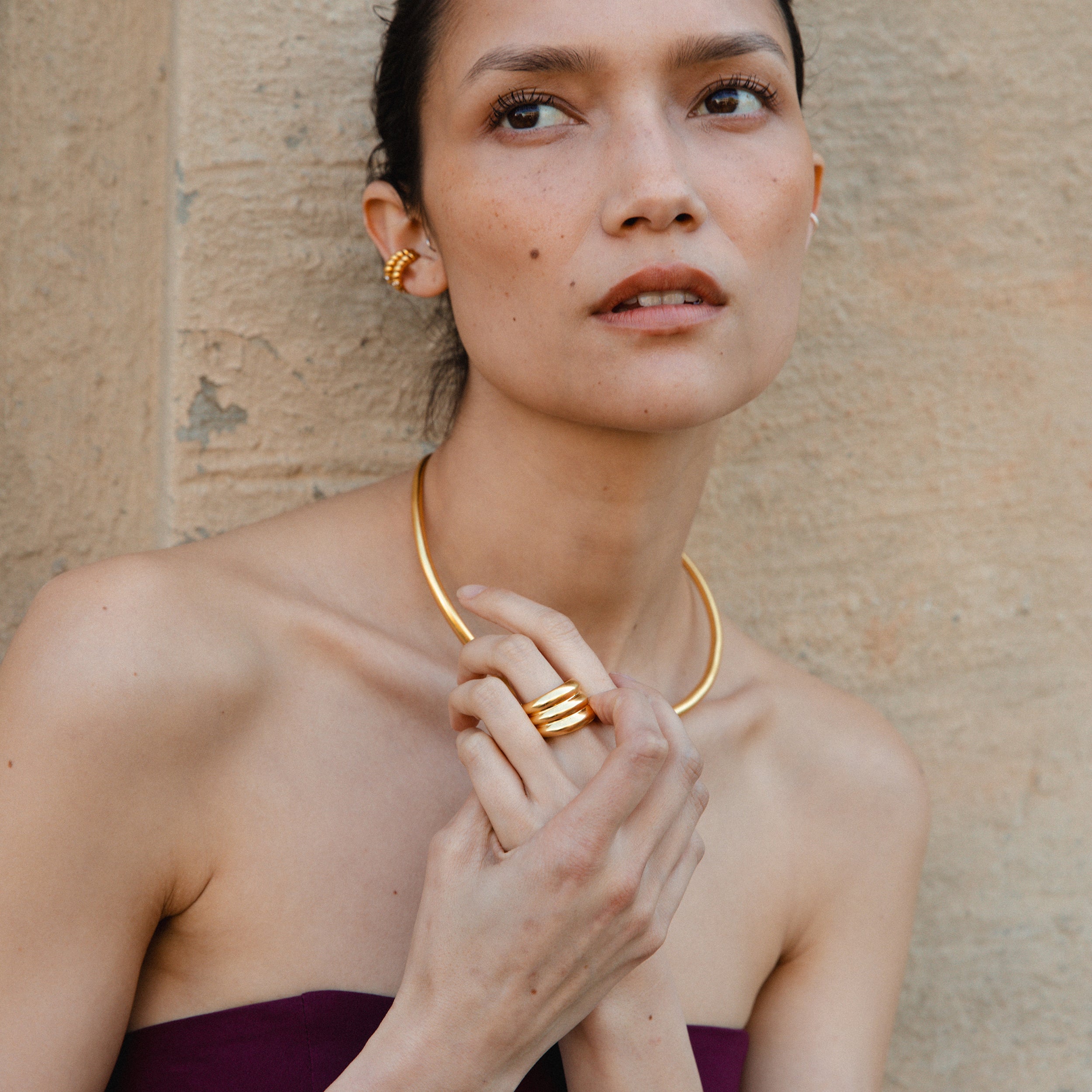 The perfect cigar band ring does exist and it's our modern take on a classic. Statement making yet sleek and tapered for a comfort fit, this timeless ring done in a rich, semi-matte gold, makes every look feel polished.