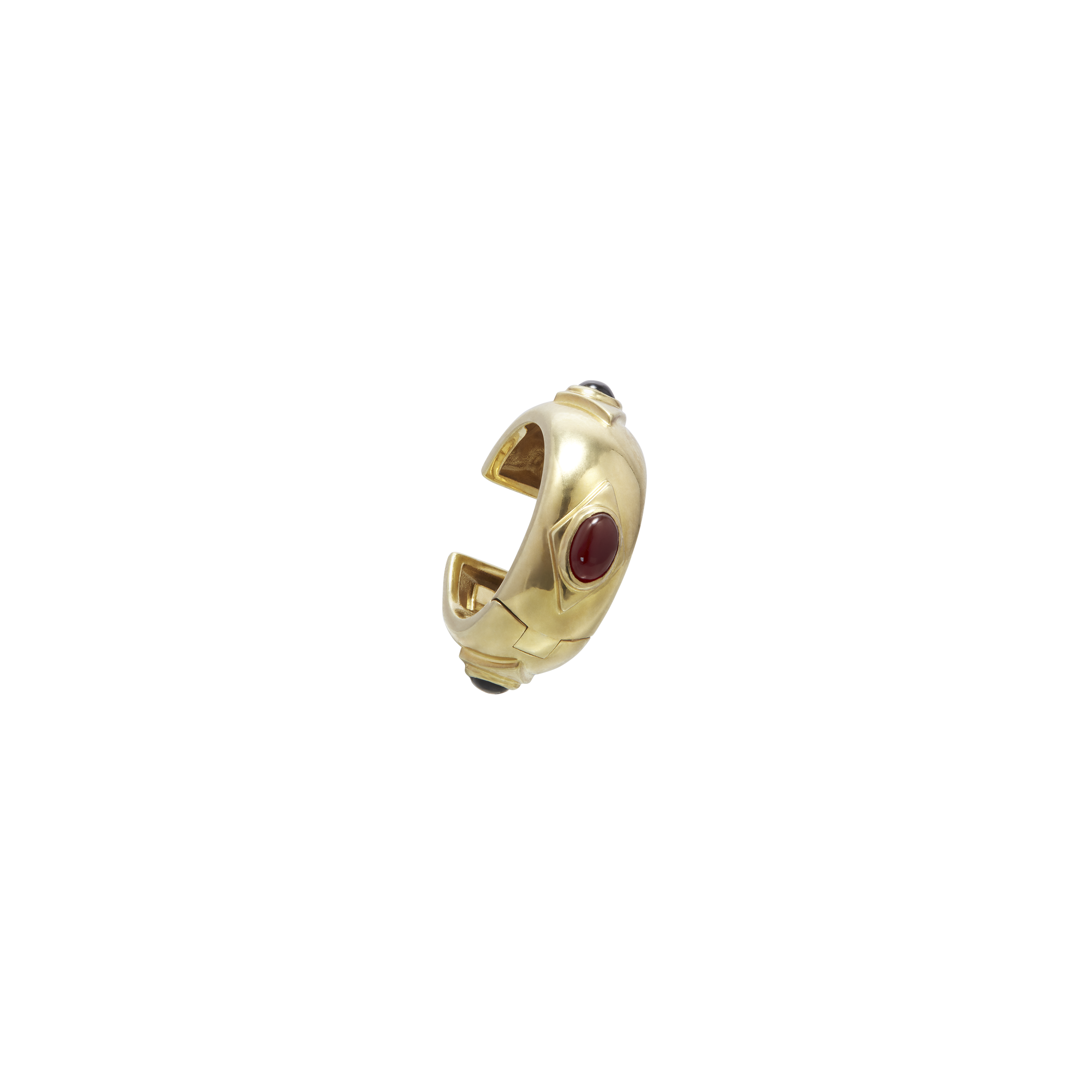 Every bohemian goddess needs a chic ear cuff to elevate her accessories game. Adorn yourself with this sumptuous gold ear cuff, accentuated by black onyx and red jasper.