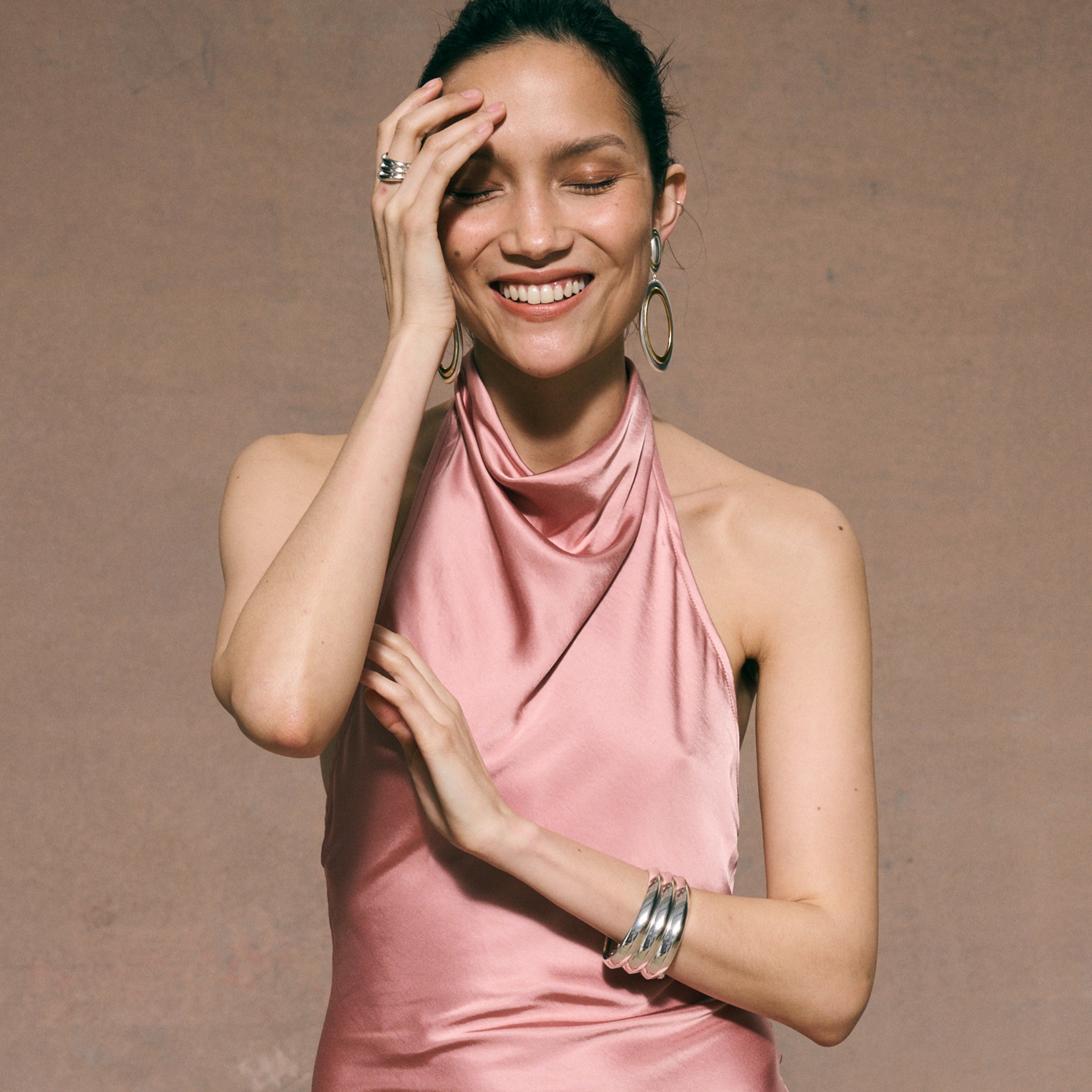 Beauty by moonlight. The Luna Drop earrings were inspired by the shimmering light the moon casts across water. Crafted with an elongated oval-shaped silhouette, these earrings feature a mixed metal finish with an open design that evokes a timeless play with light and shadow.